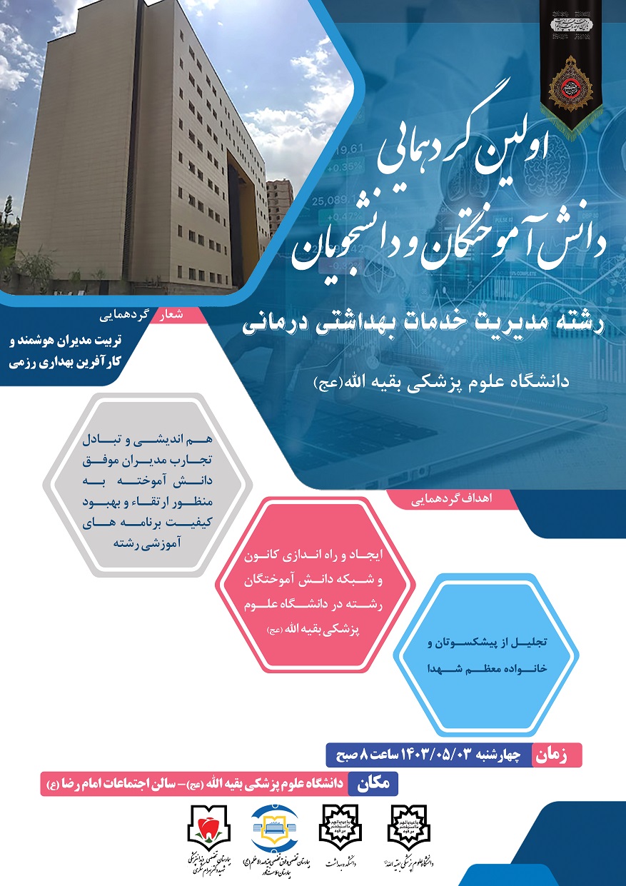 گردهمایی دانش آموختگان رشته مدیریت خدمات بهداشتی و درمانی دانشگاه علوم پزشکی بقیه ا...الاعظم در تاریخ 3 مرداد ماه سالجاری برگزار خواهد شد.
